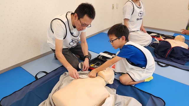 もしもの時に必要な心肺蘇生や、AEDの使用方法について、実際に体験しながら学べます。