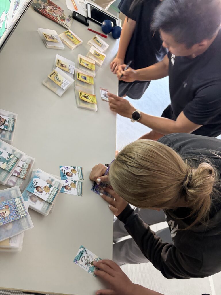 【サインを通じて交流する新川将吾選手・浜地沙羅選手】